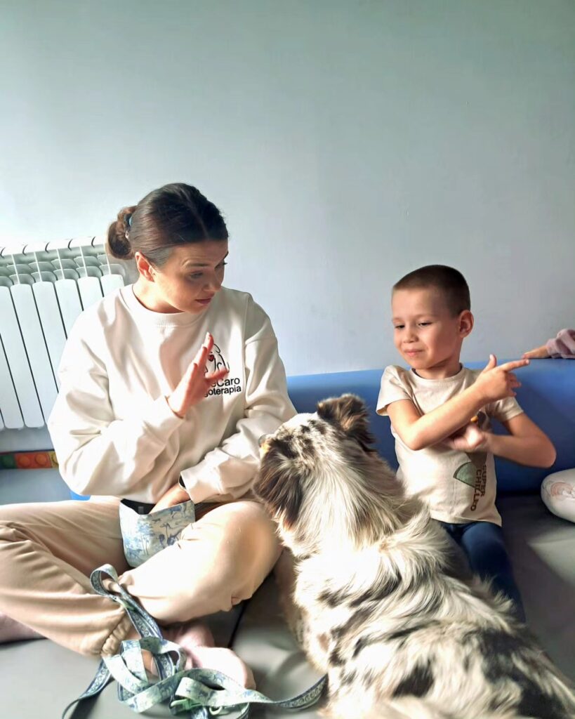 Zawsze marzyłam, żeby któreś ze szczeniąt z Mareeba realnie spełniało się w dogoterapii i wiedziałam, że po kim jak po kim, ale po Sissi są na to największe szanse. Każdy kto zna Aussie i spotyka nasza Secret chce ją ukraść, odkupić lub jej szczenię klona. Jest bardzo zrównoważona. Naprawdę rzadko spotyka się takie Aussie. Niestety klonów nie produkujemy i tworząc miot można mieć tylko nadzieje, że pewne cechy zostaną przekazane i szczenią dostanie się we właściwe ręce które je rozwiną… Tak się stało z Carą i Merlotem, bo aż dwa szczeniaki z miotu po Sissi x Grubson pracują w dogo.